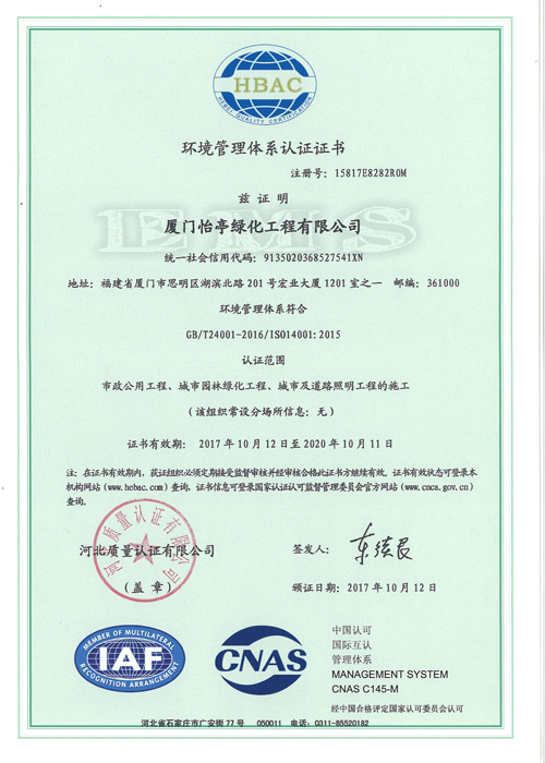 環(huán)境管理體系認(rèn)證證書