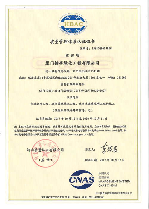 您所在的位置是:首頁 > 關(guān)于我們 > 榮譽(yù)資質(zhì) > 質(zhì)量管理體系認(rèn)證證書